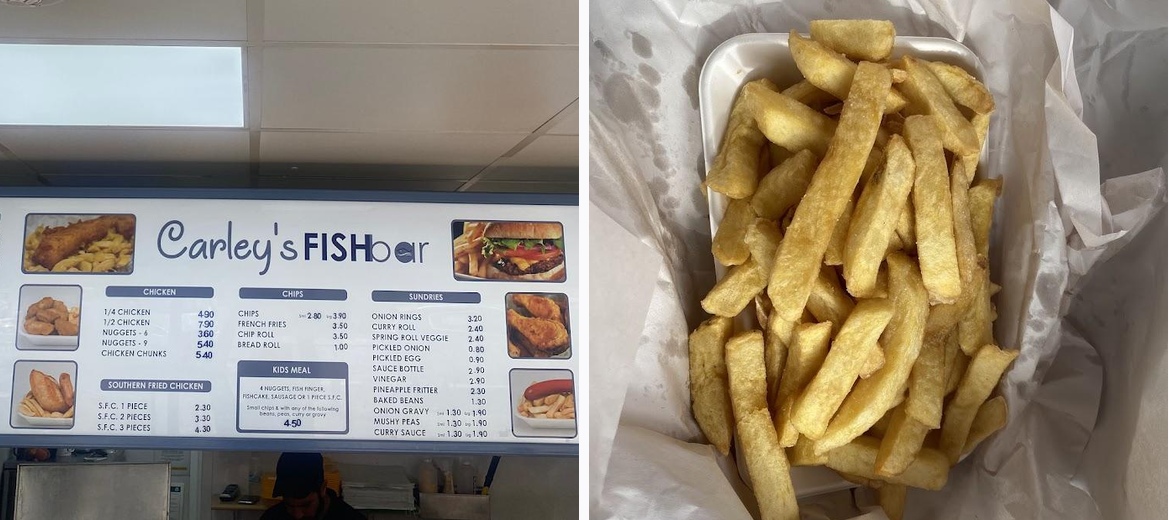 Visiting Carleys Fish & Chips is a must for anyone wanting authentic British fare. The combination of quality ingredients and time-honored recipes ensures that each bite is memorable. Don’t miss out on the cod; it consistently garners rave reviews. If you have kids, the friendly staff can recommend suitable meals from the children’s menu that won’t leave them disappointed. For those wanting to soak in the local vibe, taking a seat at one of the tables and enjoying your meal while chatting with family or friends is ideal. Whether you’re a local or just passing through, Carleys stands out as a centerpiece of good food and warm community. Don't forget to grab some extra chips for later—they are often considered the best part!